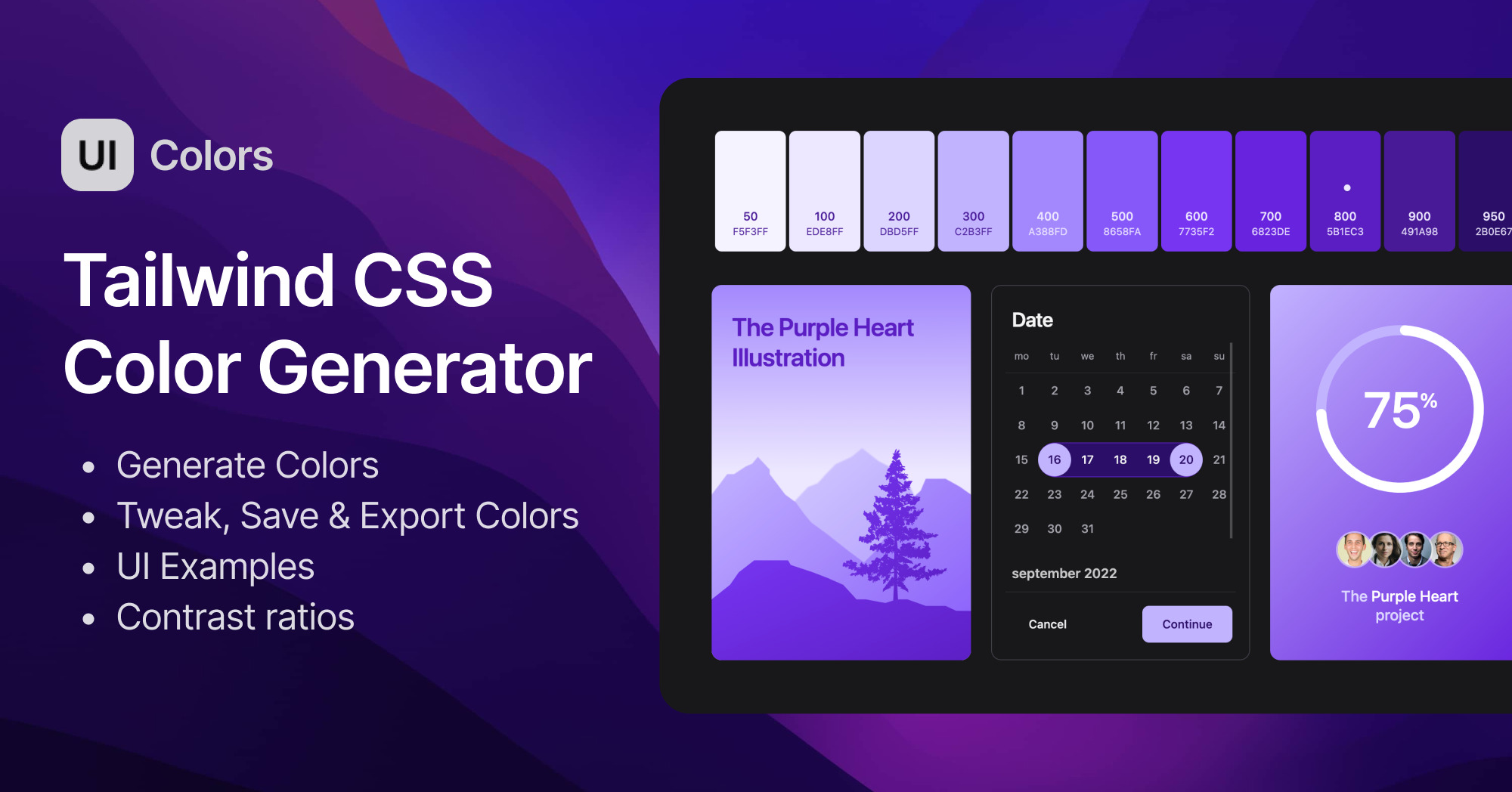 上一篇我們介紹了一個非常方便的配色工具 Color Hunt,它集合了眾多配色方案,讓你可以輕鬆選擇並應用。而現在,我們要介紹的第二個工具 UI Colors 則更進階一些。UI Colors 的開發者參考了近年來使用率迅速竄升的 Tailwind 框架,並運用其中的色彩漸變規則,讓使用者可以在這裡自由選定主色後,由系統自動延伸出漸變的色票。
